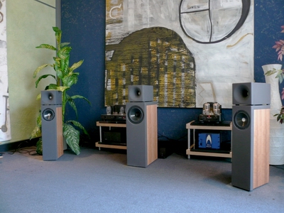 We reach that goals by using different materials like artificial stones combined with four different kinds of wood and our tractrix-horns.